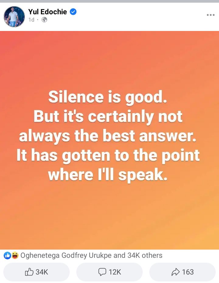 Few hours ago, Edochie took to his Instagram page and hinted at telling his story.